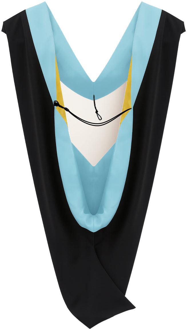 Muceta de Licenciatura/Maestría de lujo - Terciopelo azul claro, celeste y amarillo dorado